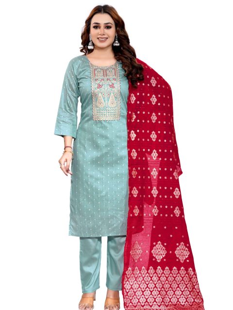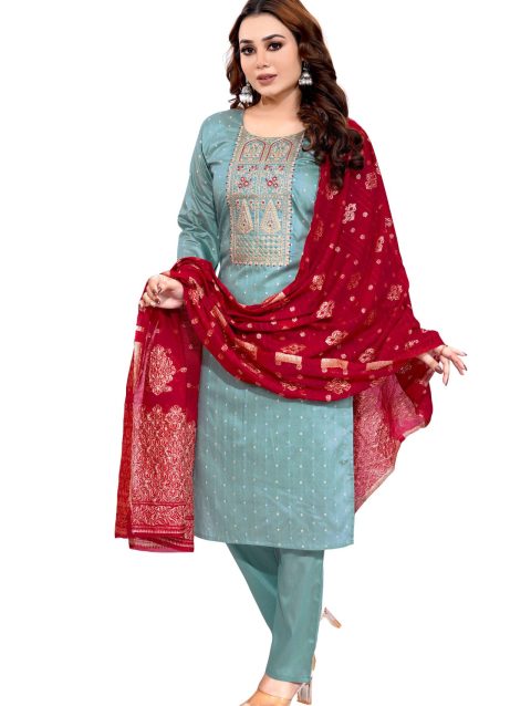 Pista Roman Butti Silk Fabric 3 Piece Set