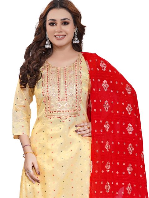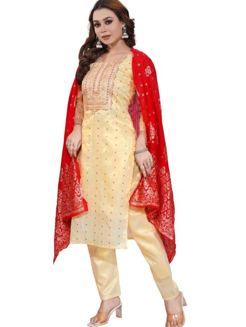 Creamy Bombay Simmer Silk Fabric 3 Piece Set