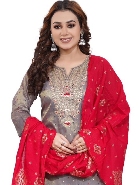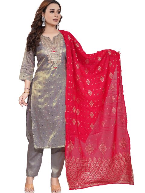 Grey Bombay Simmer Silk Fabric 3 Piece Set