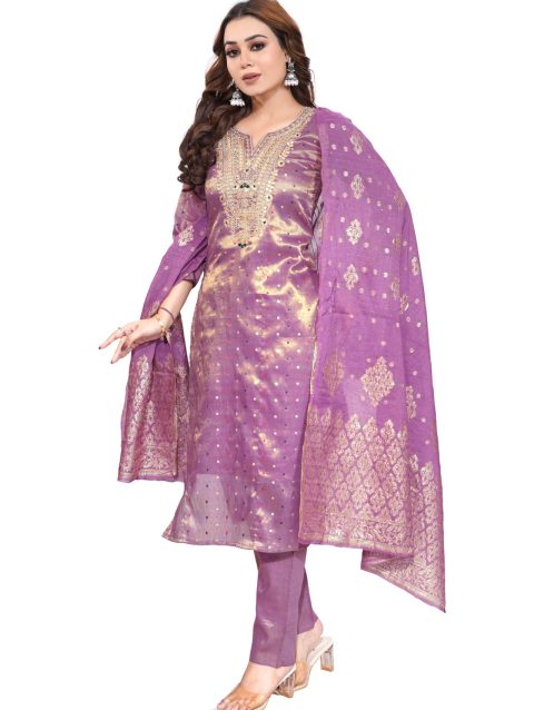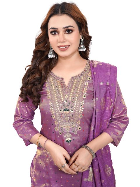 Purple Pink Bombay Simmer Silk Fabric 3 Piece Set